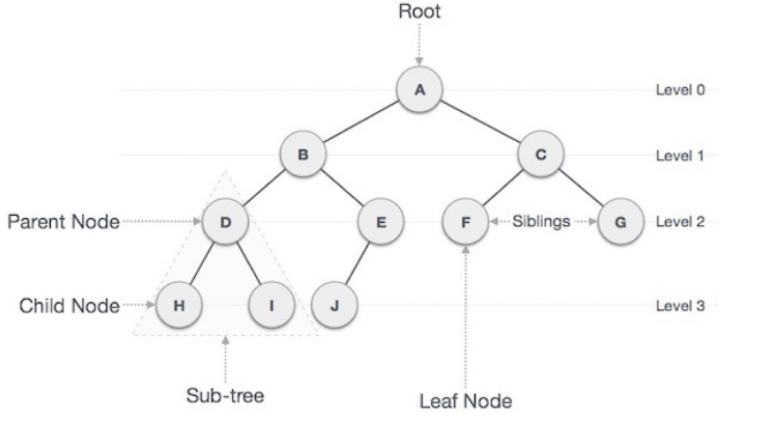 - 단말 노드(leaf node) : 자식이 없는 노드, '말단 노드' 또는 '잎 노드'라고도 부른다.