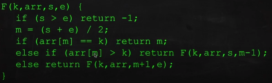 else if(arr[m] > k) return F(k,arr,s,m-1);