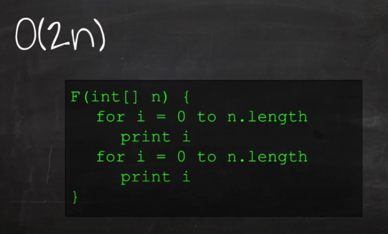 하지만 빅오 표기법에서는 O(2n) => O(n) 으로 표시한다.