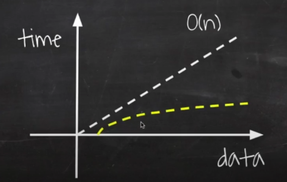 평균적인 O(n)보다도 훨씬 적게 들고, 데이터가 증가해도 성능이 크게 차이가 나지 않는다.