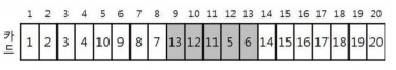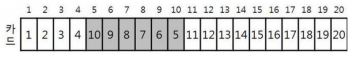 1부터 20까지 숫자가 하나씩 쓰인 20장의 카드가 아래 그림과 같이 오름차순으로 한 줄로 놓 여있다. 각 카드의 위치는 카드 위에 적힌 숫자와 같이 1부터 20까지로 나타낸다.