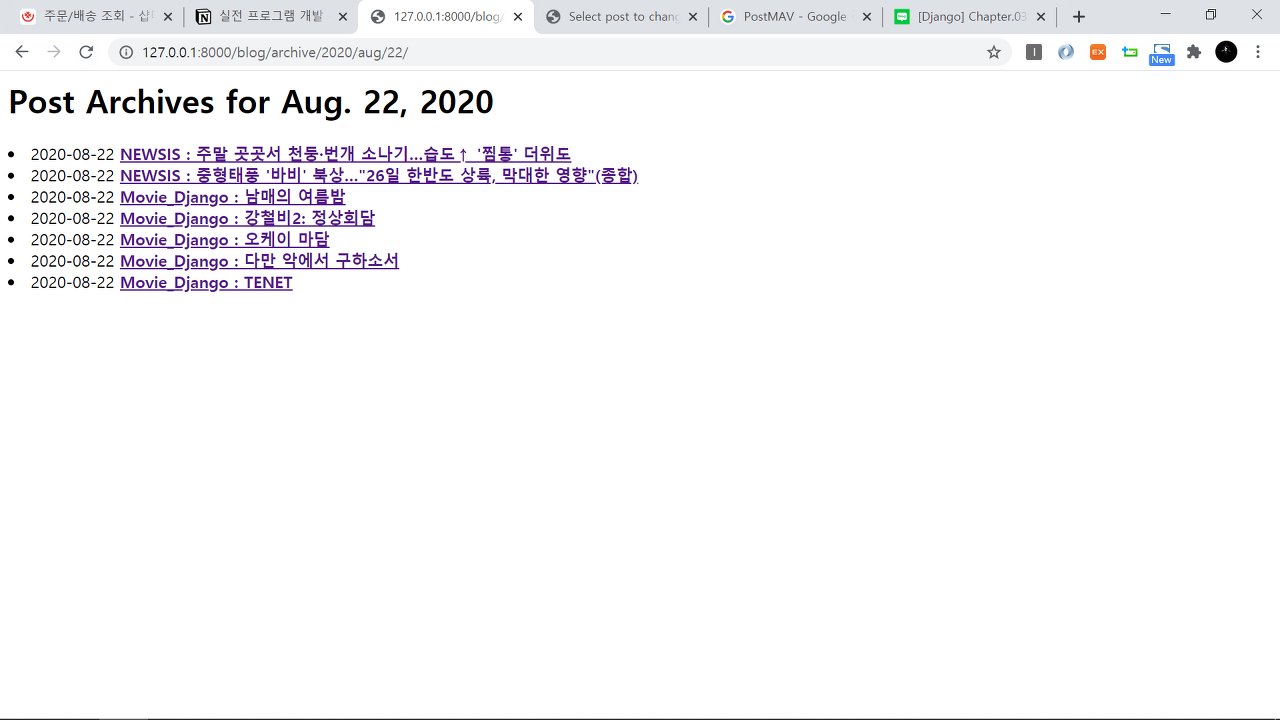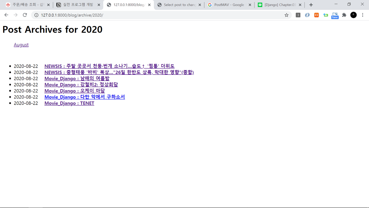 | 블로그 앱 만들기 ③ "개발 코딩하기 - URLconf 코딩하기 & View 코딩하기" with Django (0) | 2020.08.21 |
