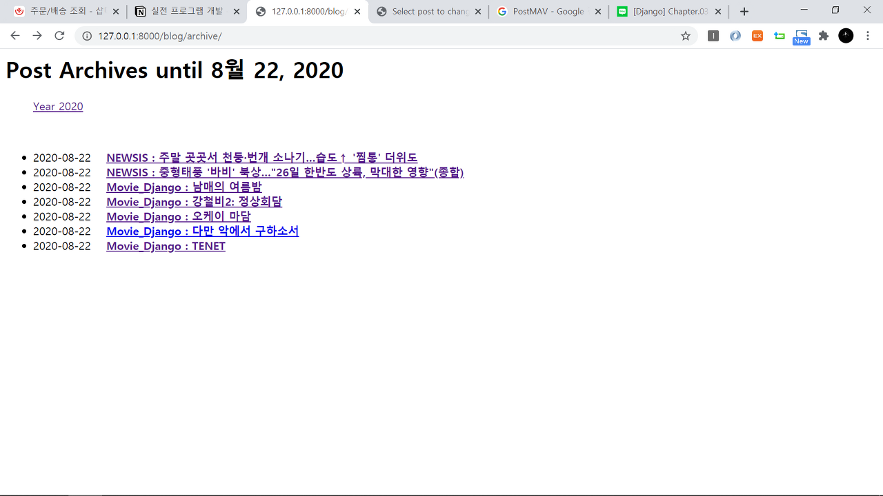 127.0.0.1:8000/blog 로 접속한다.