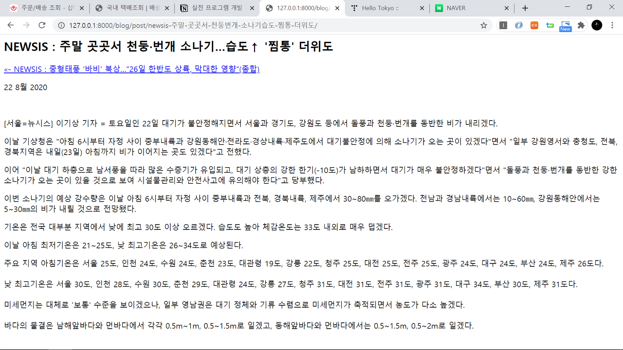블로그 앱 만들기 ⑤ "지금까지 작업 확인하기" with Django 본문
