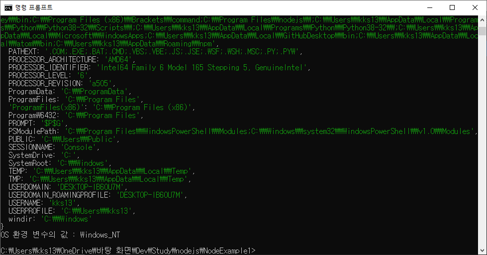 console.log('OS 환경 변수의 값 : ' + process.env['OS']);