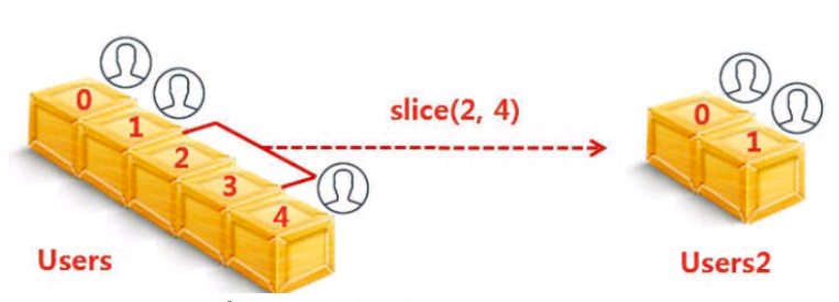 slice() 메소드에 전달하는 파라미터는 두 개이다. 첫 번째는 복사할 요소의 시작 위치이며 두 번째는 끝 위치이다.