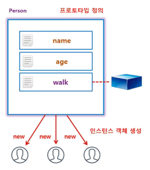 Person 객체 안에 있는 prototype 속성에 데이터나 함수를 속성으로 추가하면 실제 인스턴스 객체를 만들 때 메모리를 효율적으로 관리할 수 있다.