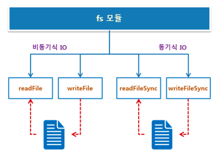 노드의 파일 시스템은 파일을 다루는 기능과 디렉터리를 다루는 기능으로 구성되어 있으며, 동기식 IO와 비동기식 IO 기능을 함께 제공한다.