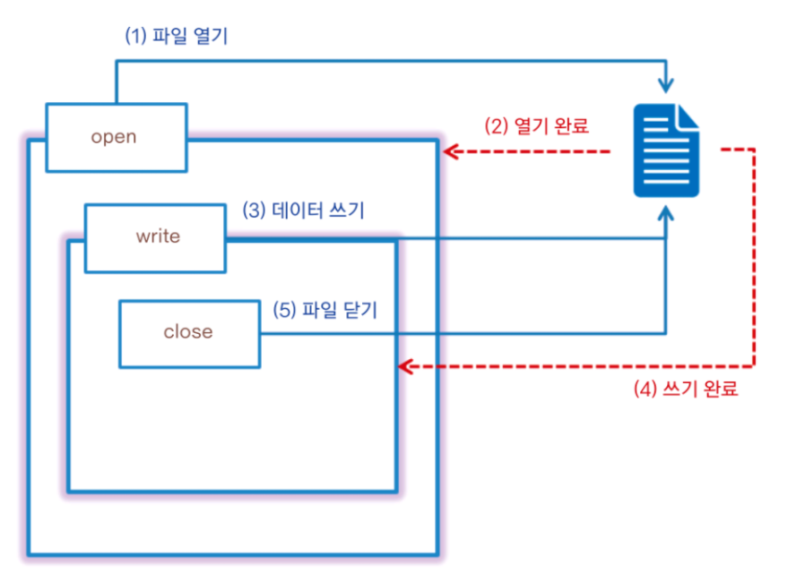 동기식 방식을 사용할 때는 파일 처리가 끝날 때까지 대기하므로 처리 속도에 영향을 줄 수 있다.