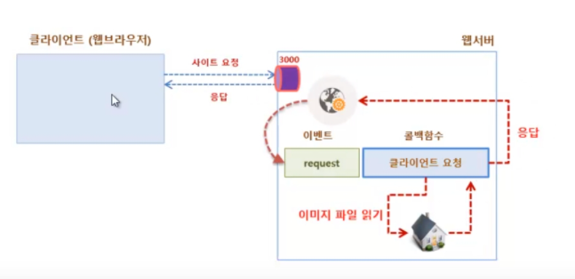 만약 웹 브라우저가 이 웹 서버에 접속한 후 데이터를 요청하면 그때마다 적절한 이벤트가 발생하므로 다양한 상황에 맞추어 콜백함수를 각각 등록하면 된다.