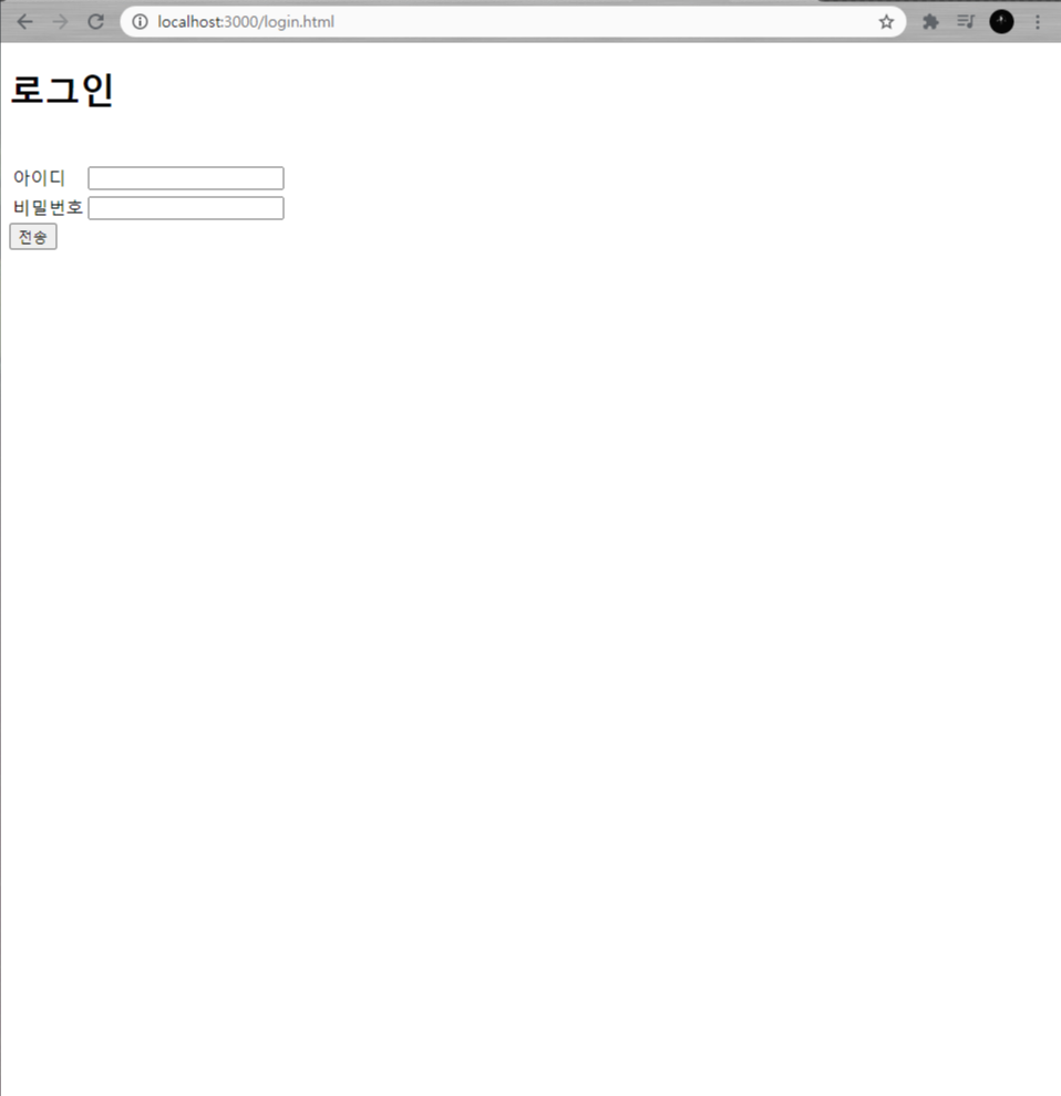 http://localhost:3000/login.html 주소를 입력해 접속하면 다음 화면처럼 나온다.
