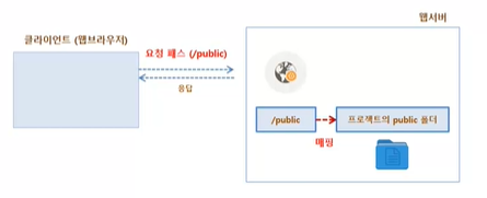 만약 public 폴더 안에 있는 파일을 사이트 /public 패스로 접근하도록 만들고 싶다면 static() 메소드를 호출할 때 다음과 같이 패스를 지정하면된다.