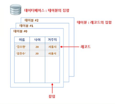 다음은 관계형 데이터베이스의 기본 구조이다.