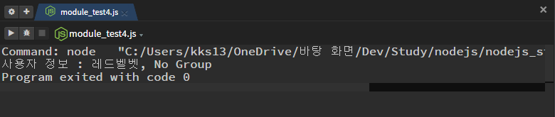이것은 그룹의 아이디와 이름을 알 수 있도록 만든 객체이다. 이렇게 만든 모듈 파일은 module_test1.js 파일에는 다음과 같이 입력한다.