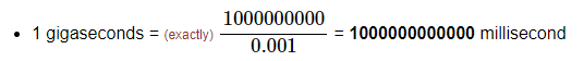 gigaseconds-millisecond conversion