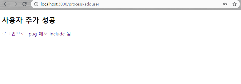 마지막으로 adduser 함수를 호출할 때 사용자가 볼 수 있는 응답 페이지를 pug 템플릿으로 만들어보자.