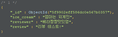 - 아이스크림에 대해서 리뷰를 작성하면 저장되는 DB (id, ice_cream, reviewer, review)