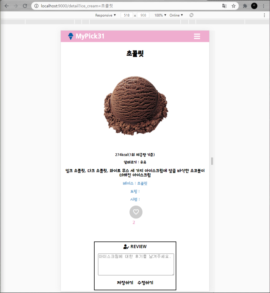 아이스크림 상세 페이지로 가면, 로그인을 진행한 유저들에 대하여 아이스크림에 대한 리뷰를 적을 수 있는 기능